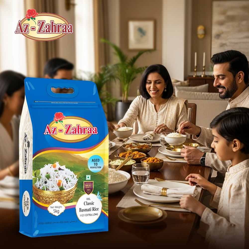 Az-Zahraa basmati is known for its slender grains, natural shine, and ability to carry flavours without overpowering the dish. It fits comfortably into everyday meals as well as traditional and festive cooking.