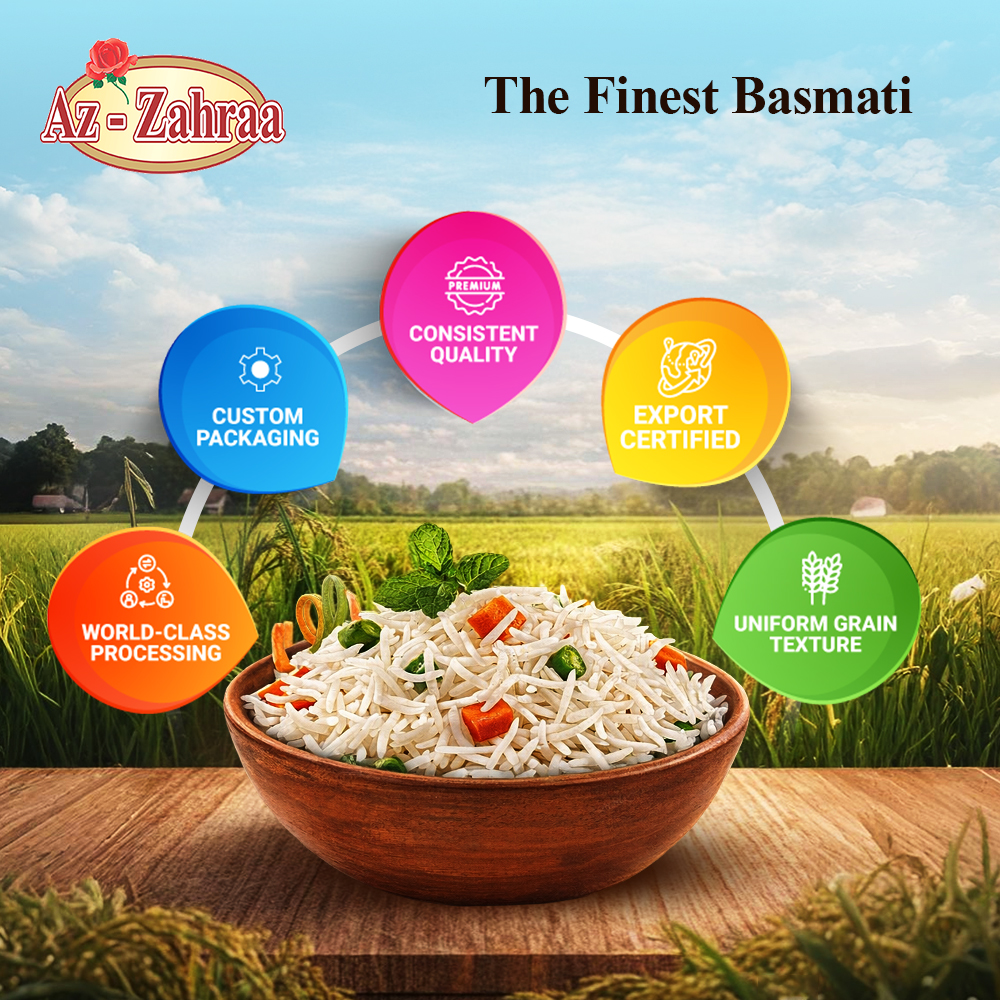 Az-Zahraa brings 25 years of experience in handling basmati rice with care, discipline, and consistency. Built as an export-oriented brand, we focus on delivering rice that performs well in real kitchens and meets the expectations of diverse markets.